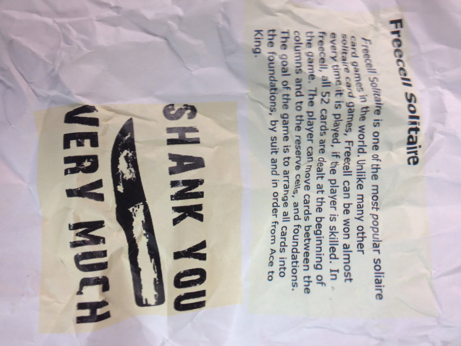 We're currently deploying OS updates that are getting pushed through our office we're updating everyone to Windows 7 [x64] Enterprise. While I was building the master image to deploy using OSD with LANDesk using Hardware Independent Imaging (furthermore referred to as "HII"). I was told to remove the two games from the OS and any other "time wasters". Since then I now get one of these about once a week left on my desk. Perhaps the media is right about video games leading to violence. Just look what removing solitaire has done to my users.. I joke.. but really I'll have to watch my back while out in the yard smoking cigs and lifting weights now I guess. (0.o)